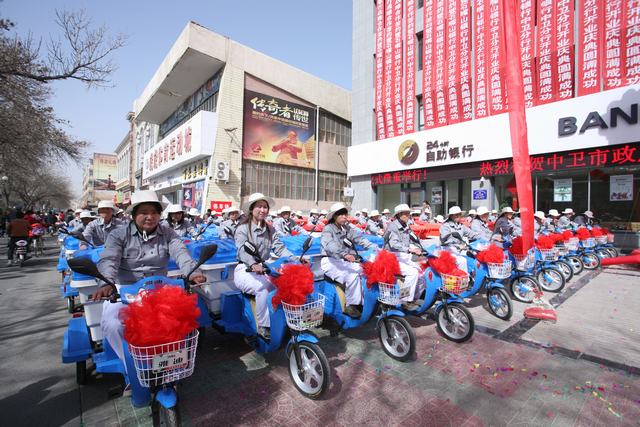 石嘴山银行捐赠的价值75万元100辆电动环卫车