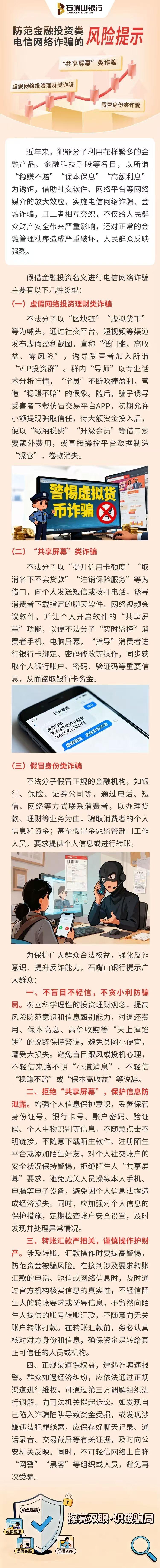 石嘴山银行防范金融投资类电信网络诈骗的风险提示